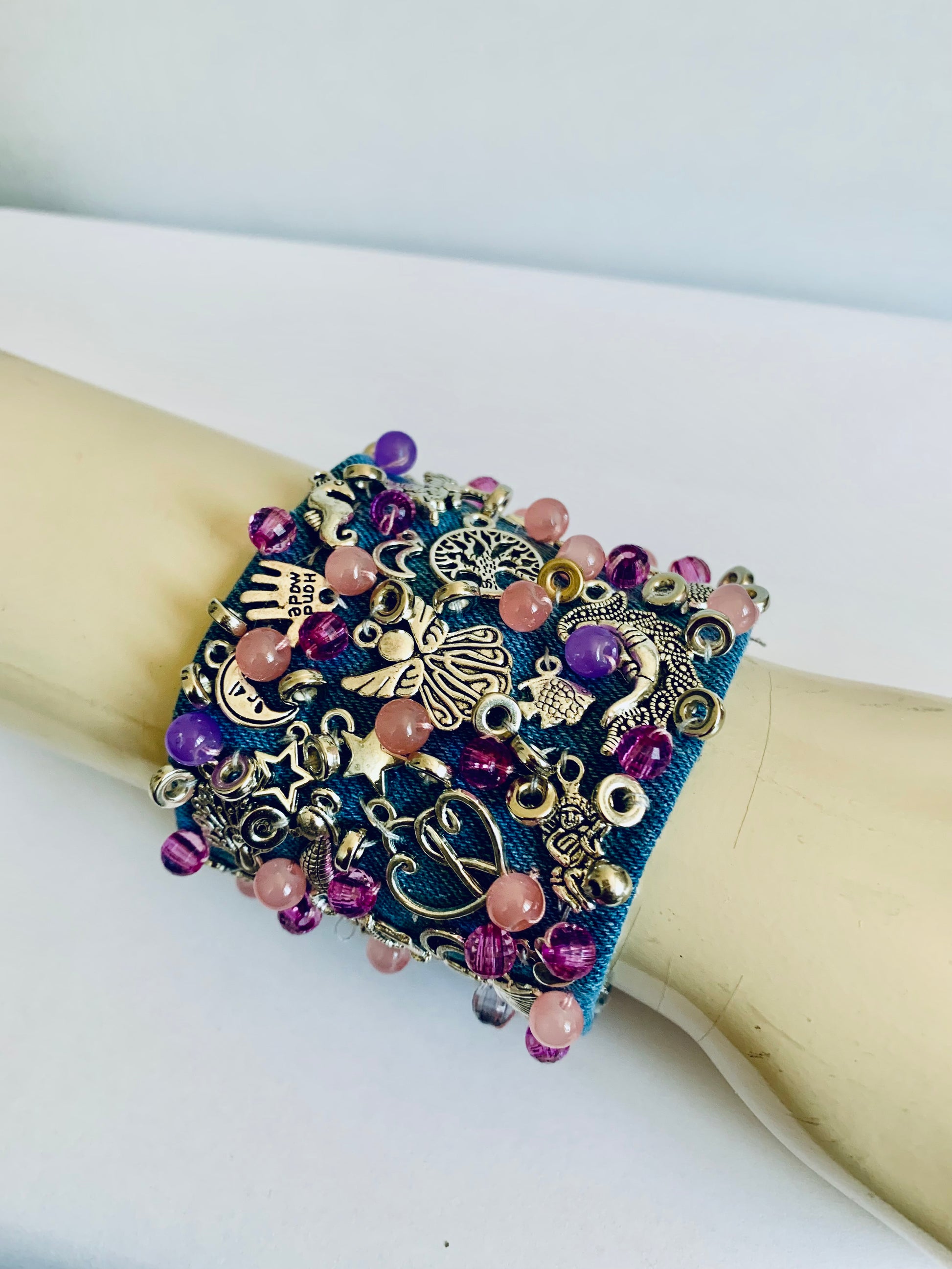Angela Denim Bracelet with Charms & Beads– Boho Chic Jewelry
