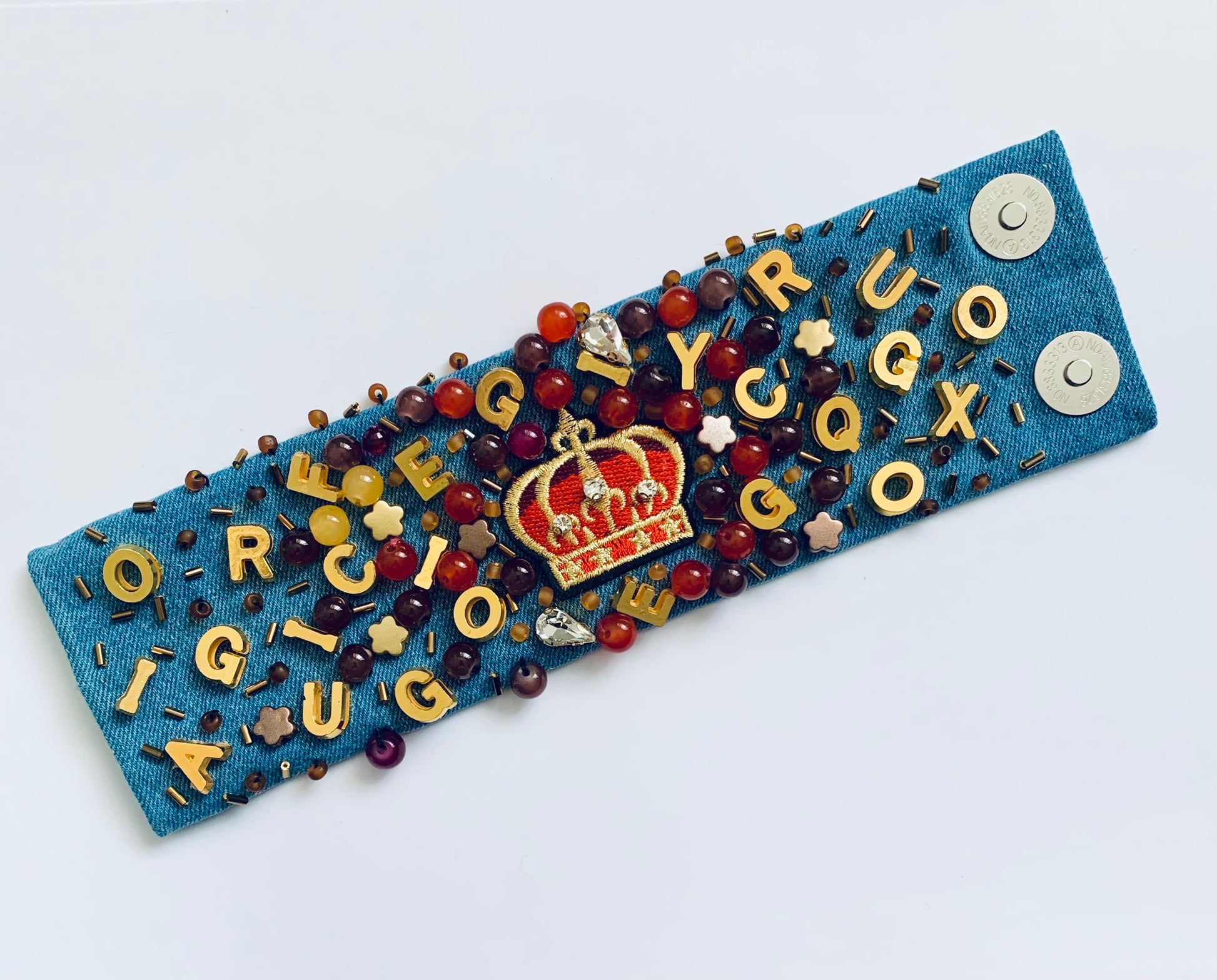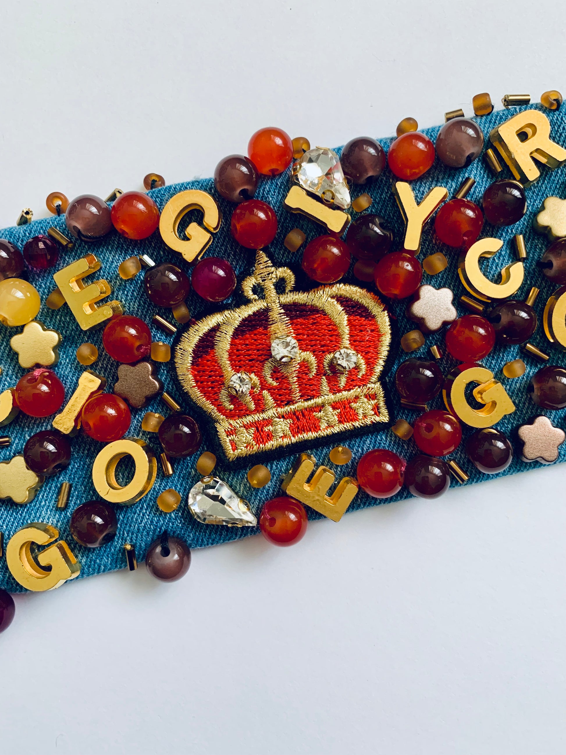 CROWN – Handmade Denim Bracelet with Royal Embroidery & Bead