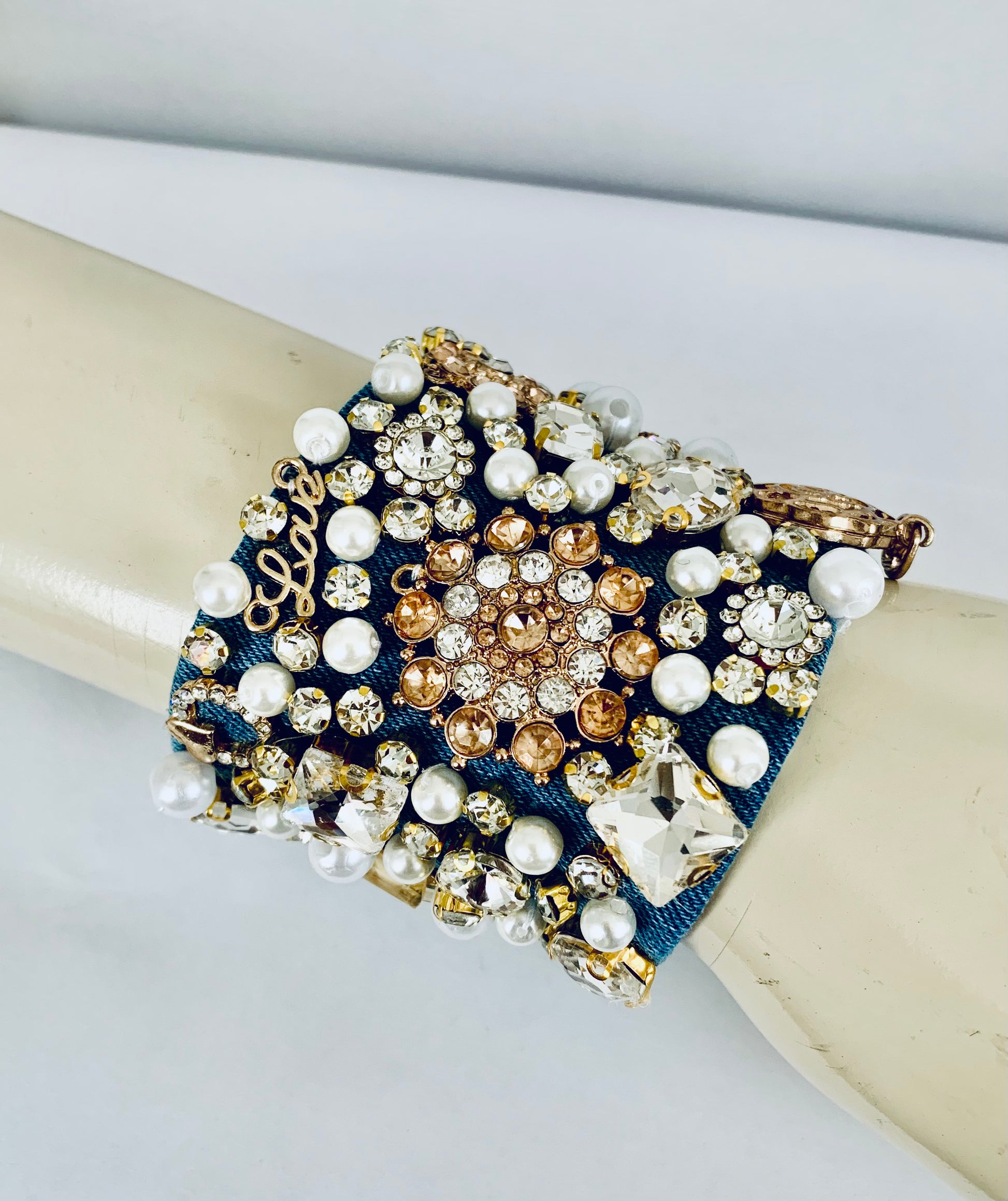 Glam Denim Bracelet with Charms & Beads–Boho Chic Jewelry