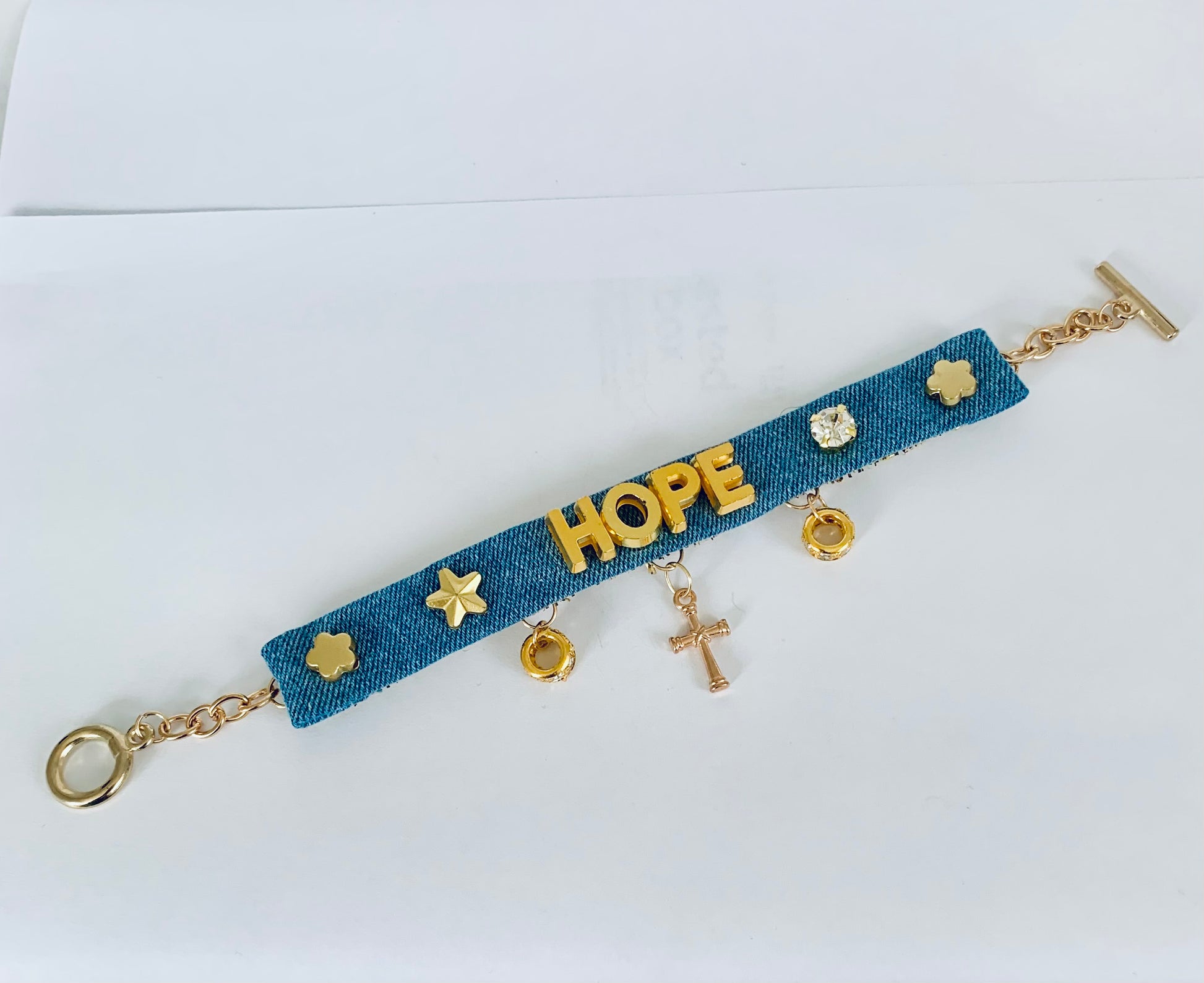 Hope Denim Bracelet with Charms and Beads–Boho Chic Jewelry