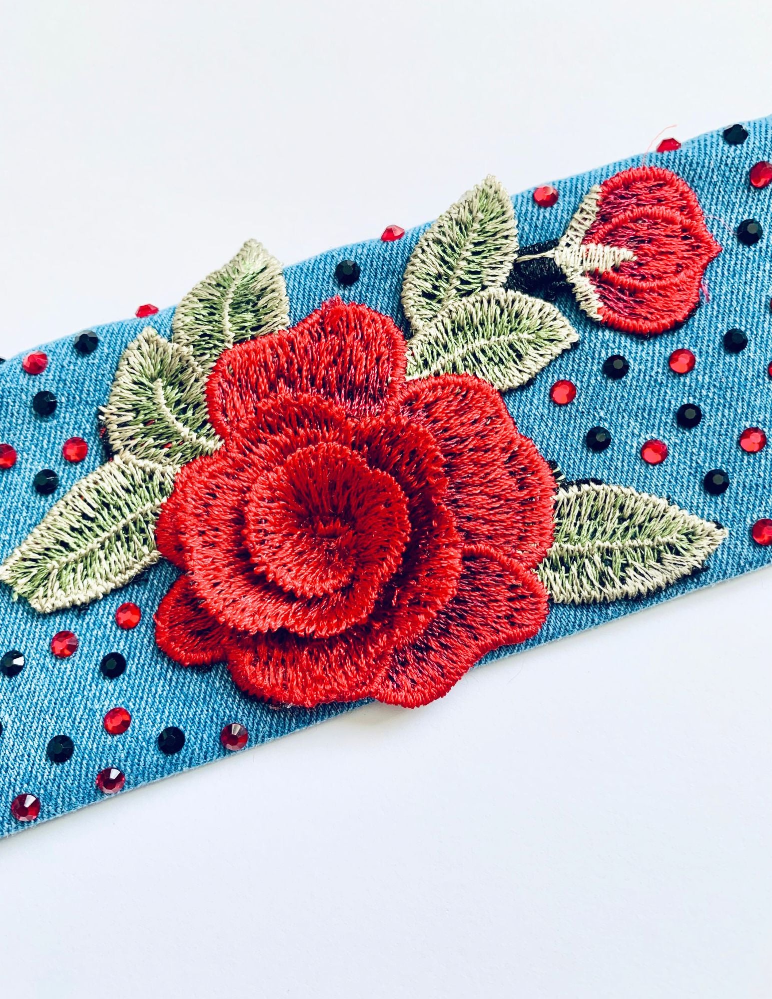 ROSE – Handmade Boho Chic Embroidered Denim Bracelet